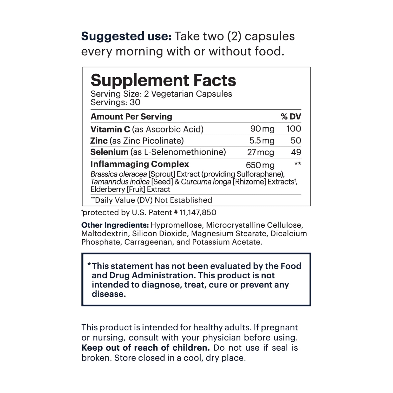 - Daily Immune Supplement: Take two capsules daily, with or without food.