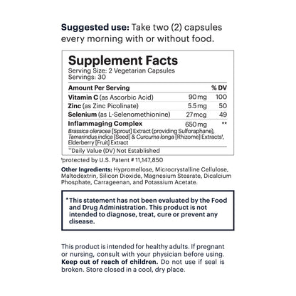 - Inflammaging Complex: Combines a patented blend of tamarind and turmeric extracts with broccoli extract (a sulforaphane source), ingredients that are proven to promote a healthy inflammatory status.